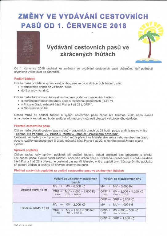 Změny ve vydávání cestovních pasů od 1.7.2018